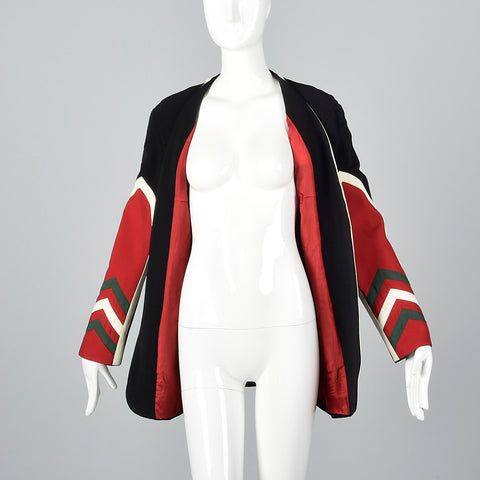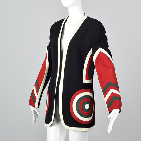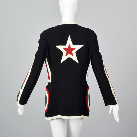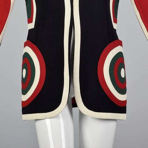 This vintage Moschino jacket is not for the faint of heart - look at those attention grabbing targets! The textile of this jacket is a rayon blend ...