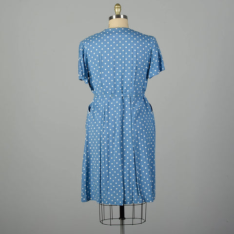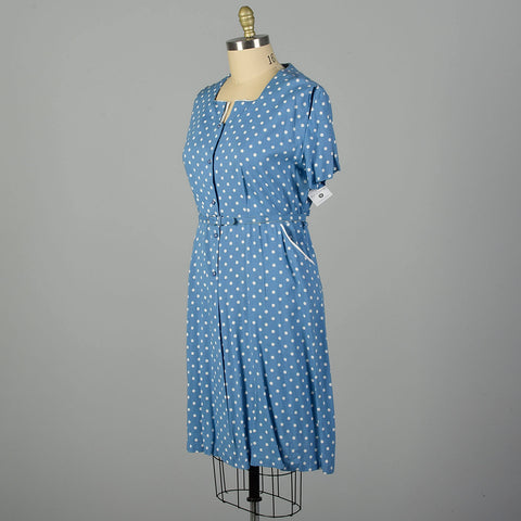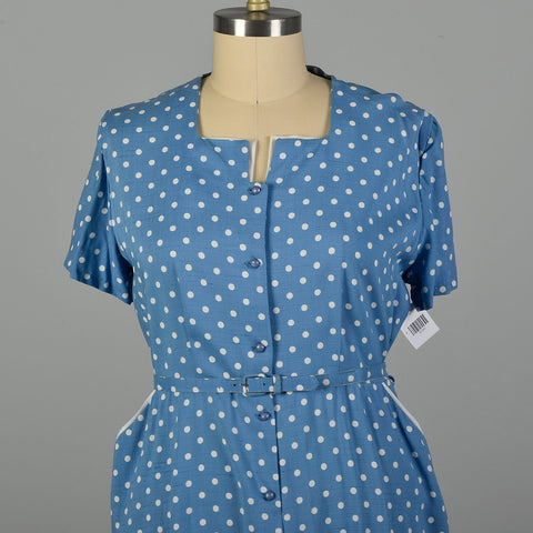 3XL 1950s Blue Day Dress Polka Dot Short Sleeve Volup Summer Casual