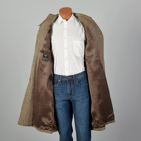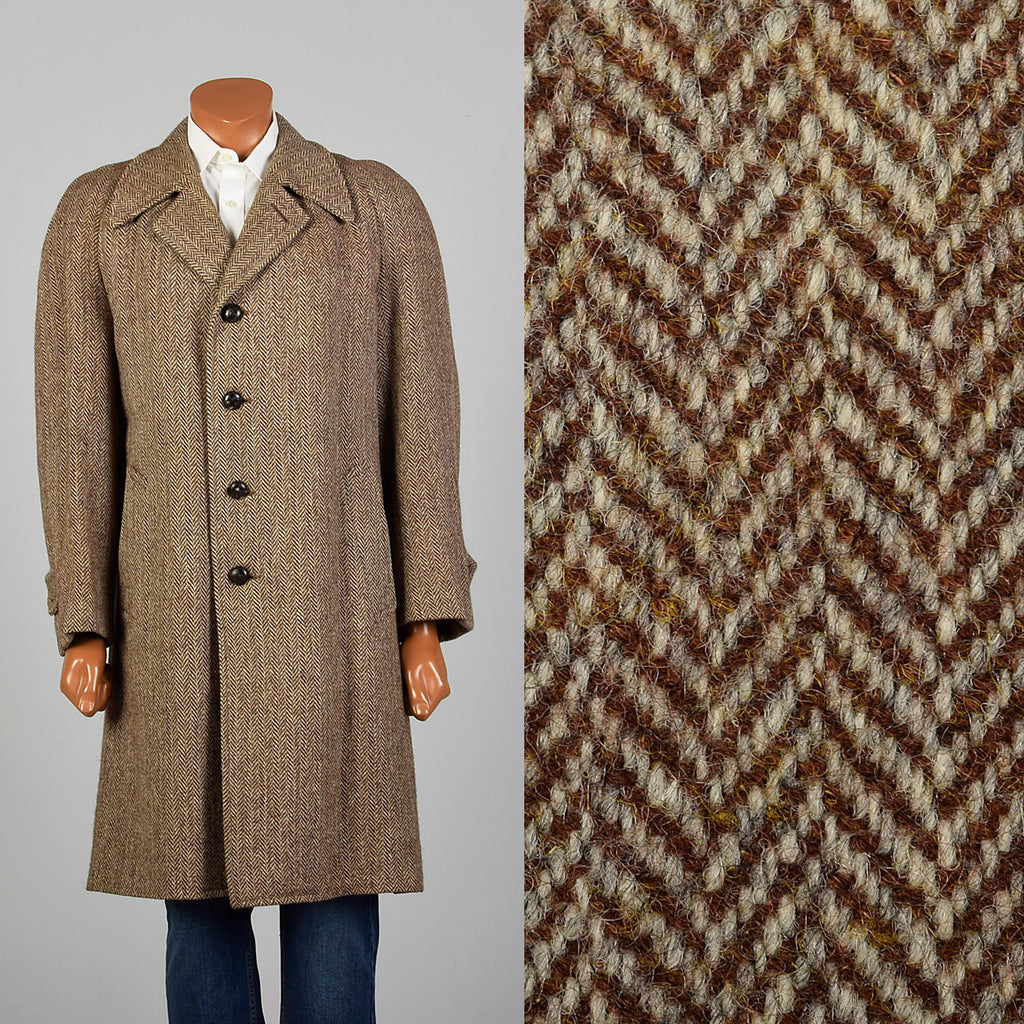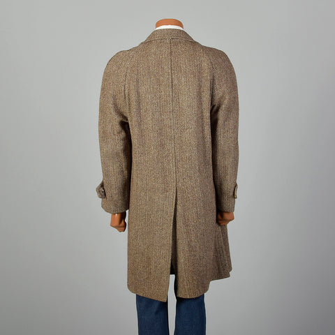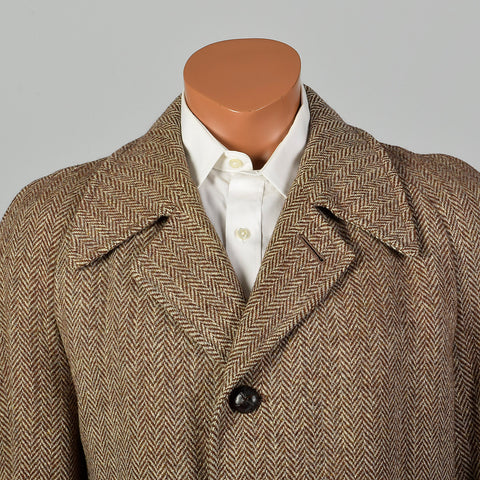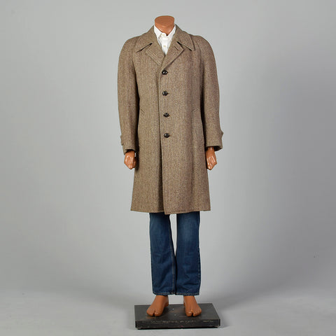 41 Medium 1950s Mens Brown Wool Tweed Coat