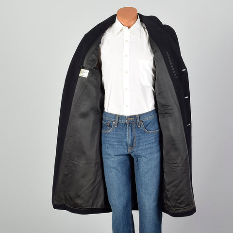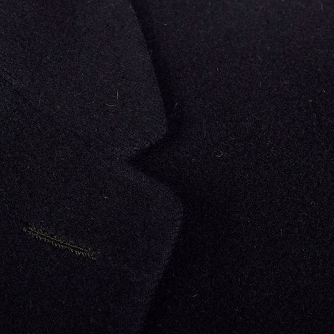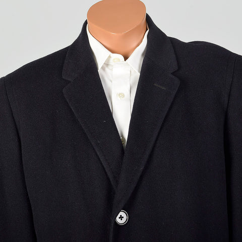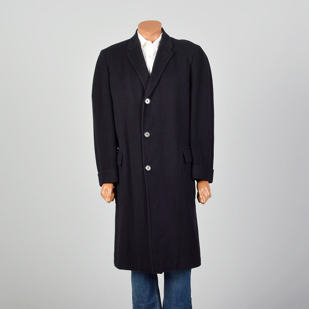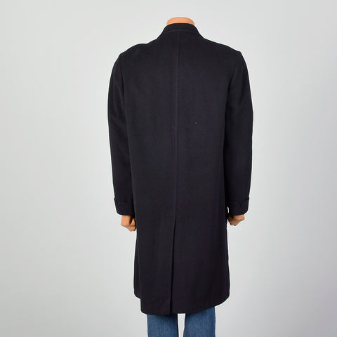 This listing is for one coat. The textile is cashmere. Heavyweight, classic black overcoat. Small pointed collar and lapel. Two external convertibl...
