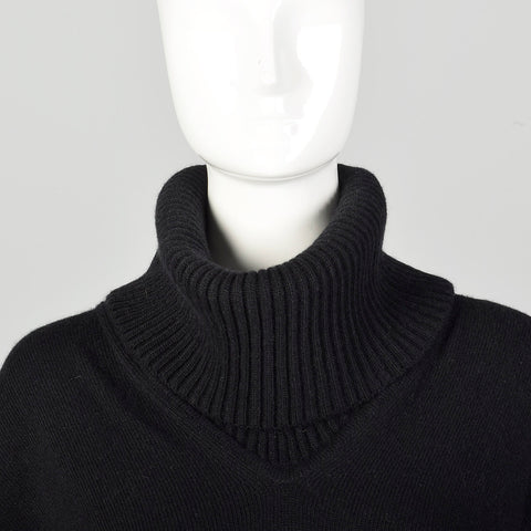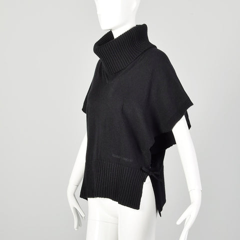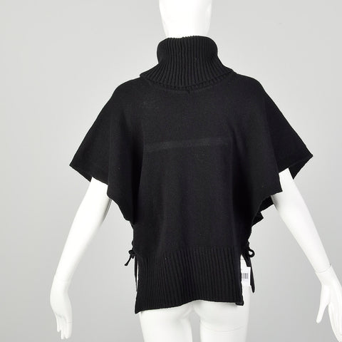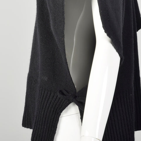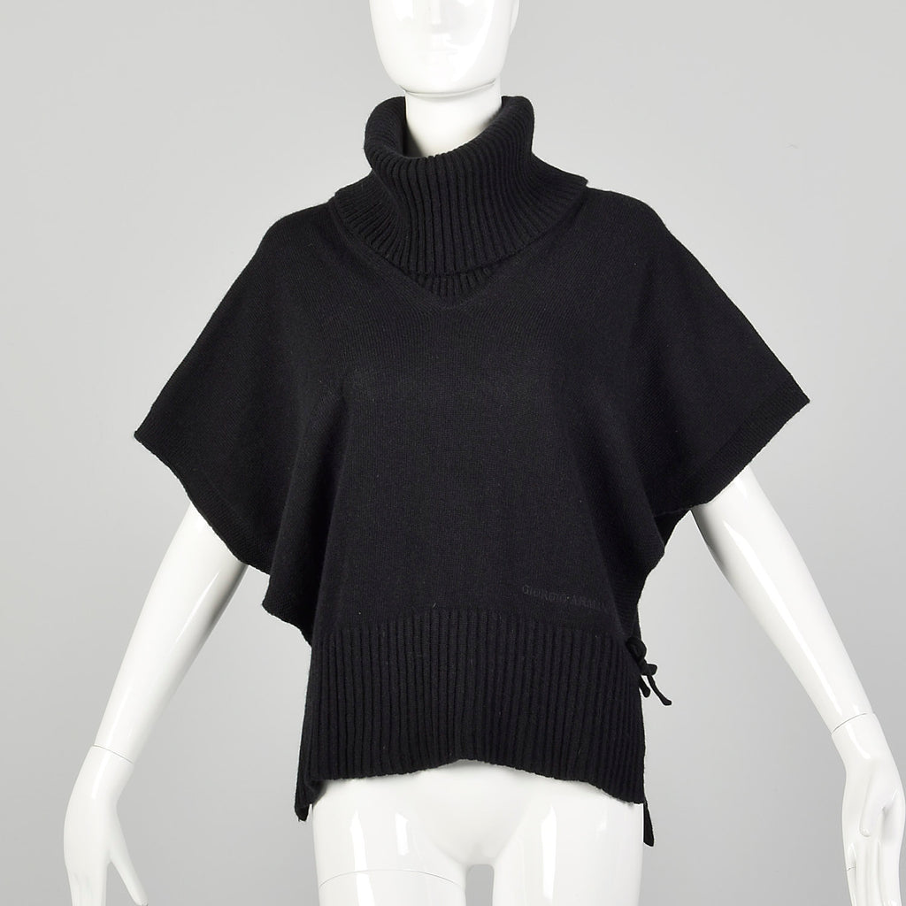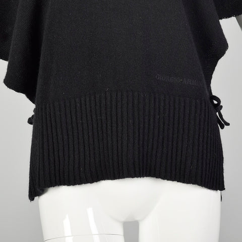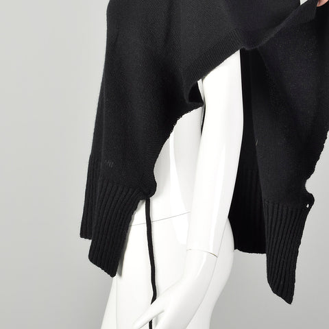 Giorgio Armani Black Cashmere Knit Poncho Sweater with Cowl Neck