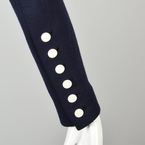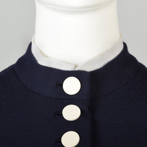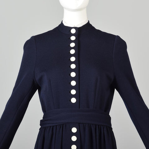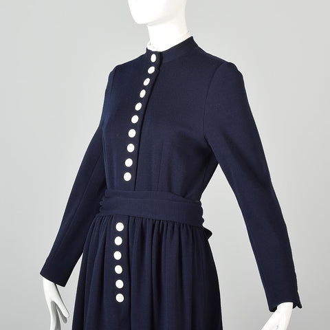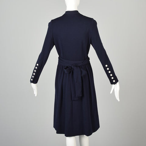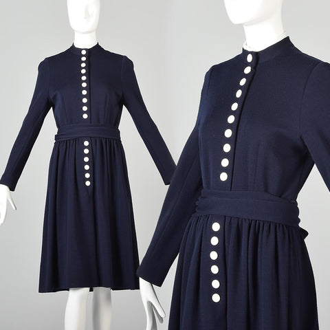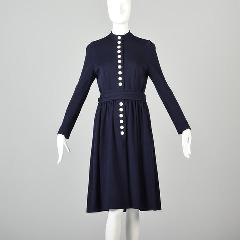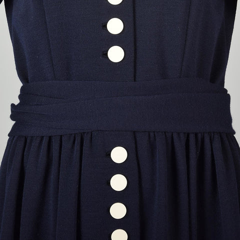 Classic 1960s Normal Norell Navy Blue Dress with White Buttons
