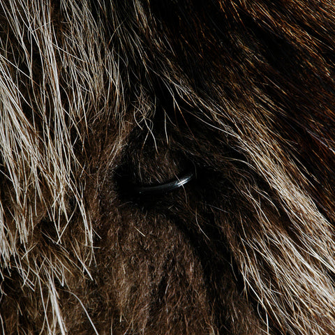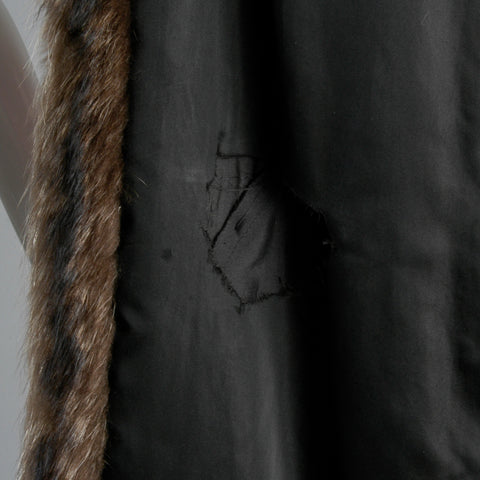 This is a very pretty raccoon fur coat. Full length, minimalist straight style. There is a large hole that has been cut in the black satin lining, ...