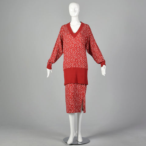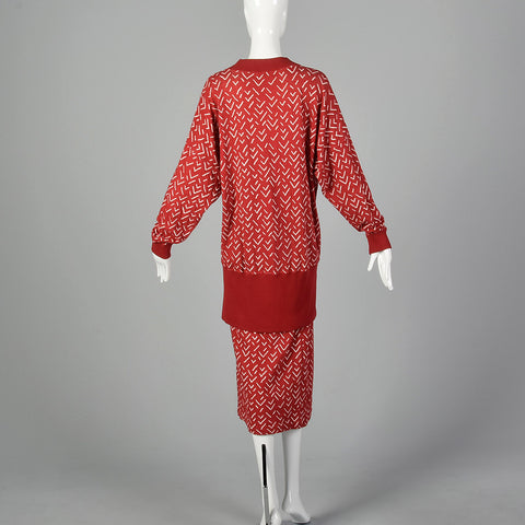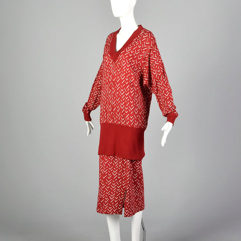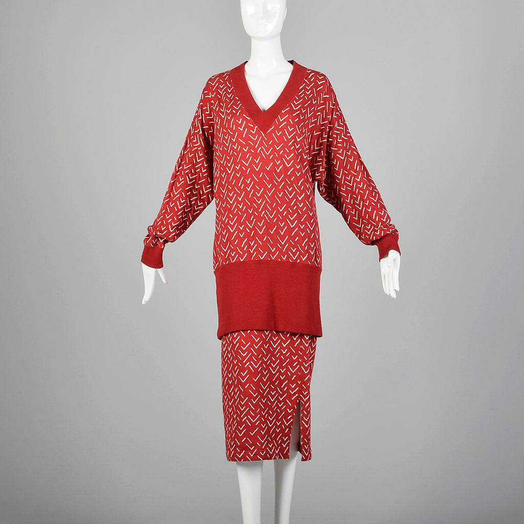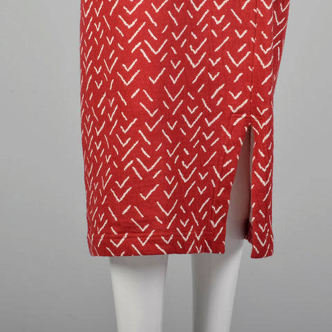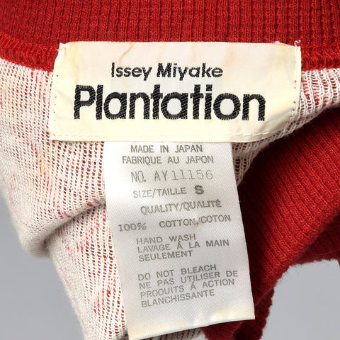 This listing is for one two piece set. Textile is cotton. This stunning Issey Miyake Plantation label two piece is bold in cardinal red with a herr...