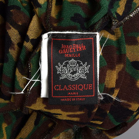 This listing is for one wrap. Textile is nylon. Jean Paul Gaultier mesh camo wrap. Large square camouflage wrap that can be worn a number of differ...