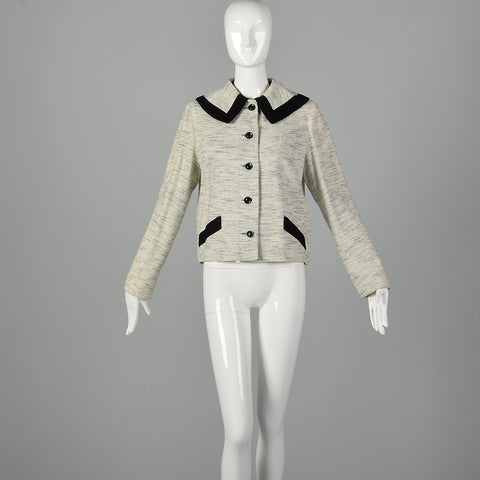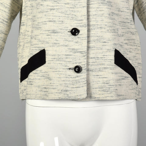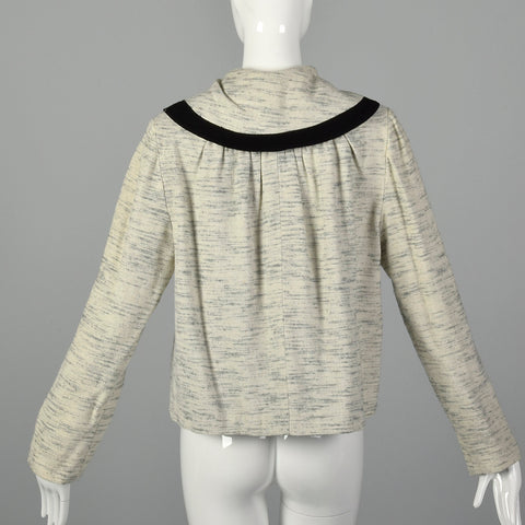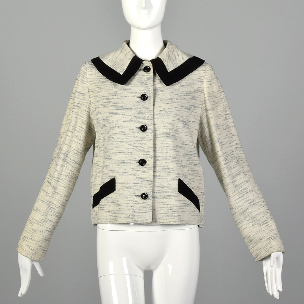 This listing is for one jacket. Textile is unmarked. Atomic fleck jacket. Light gray textile with black trim around the collar and on the front as ...