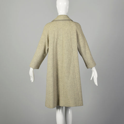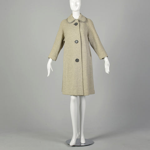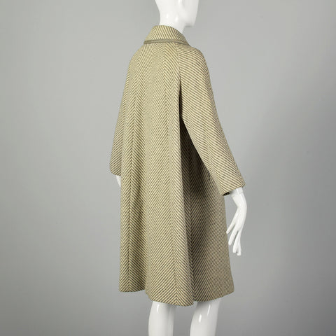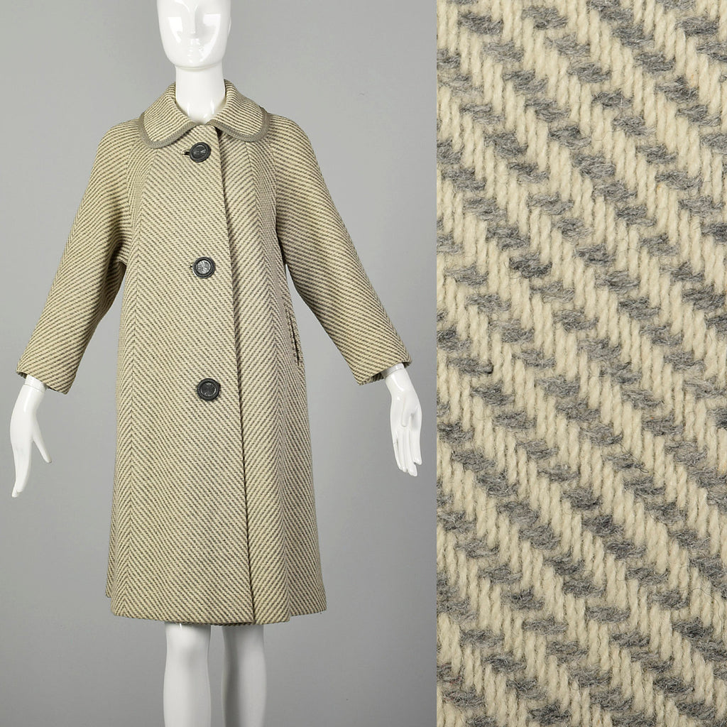 Large 1950s Swing Coat Gray Herringbone Stripe Wool Tweed Peter Pan Collar Winter Outerwear