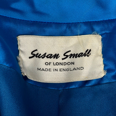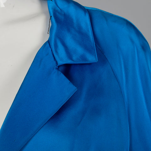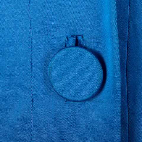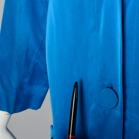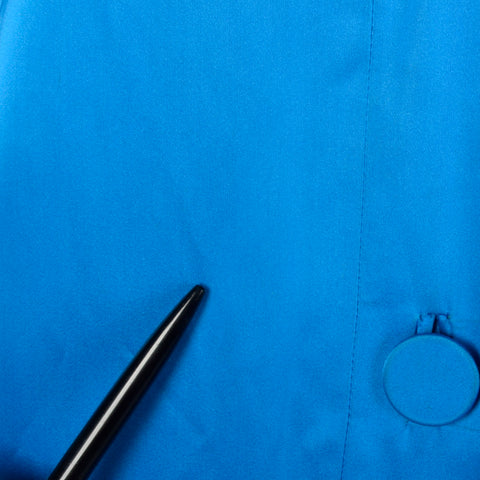 This listing is for one coat. The material is unmarked but feels like silk. Stunning bright blue, formal evening coat. 3/4 sleeves and patch pocket...