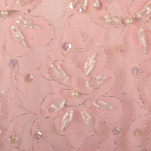 This is a beautiful mod dress. Pink with a sheer lace overlay, embellished with beading, sequins and rhinestones. Condition: Very Good Condition D...