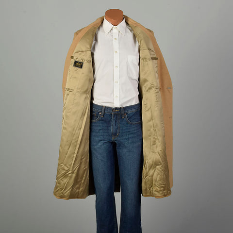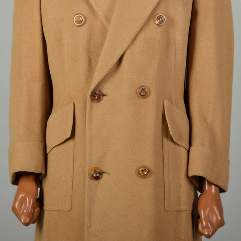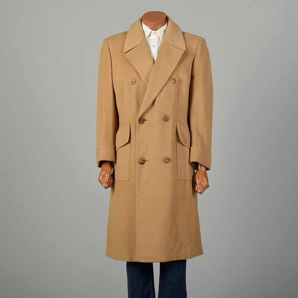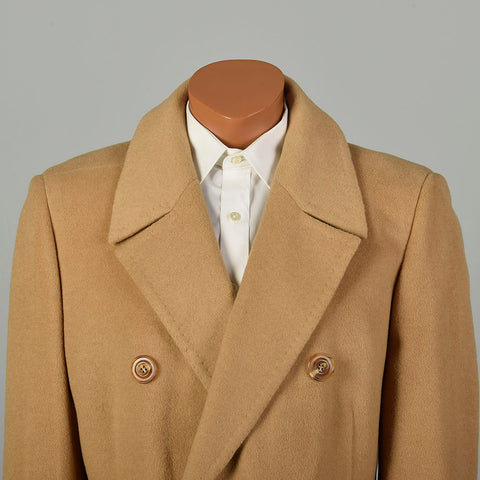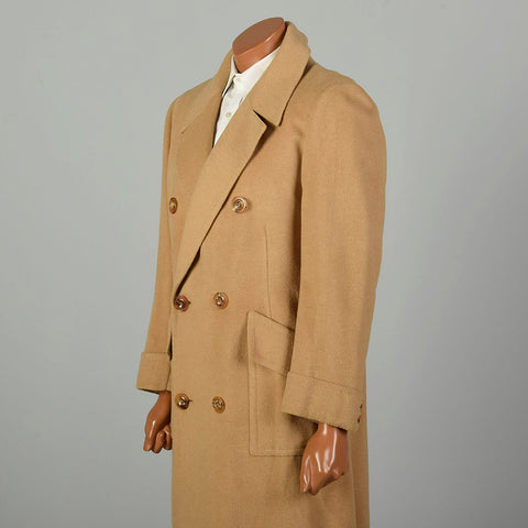 Large 1970s Coat Double Breasted Tan Winter Overcoat