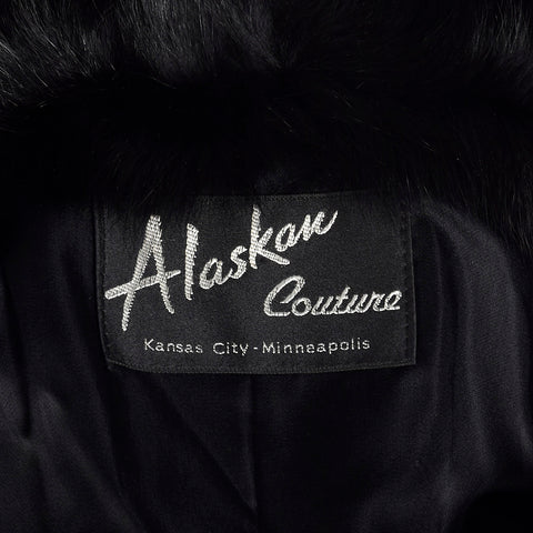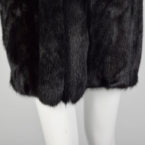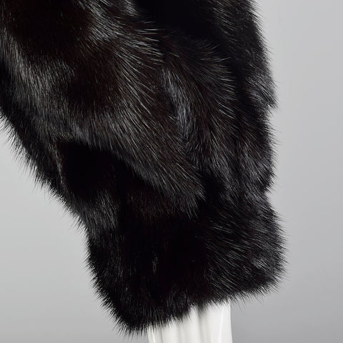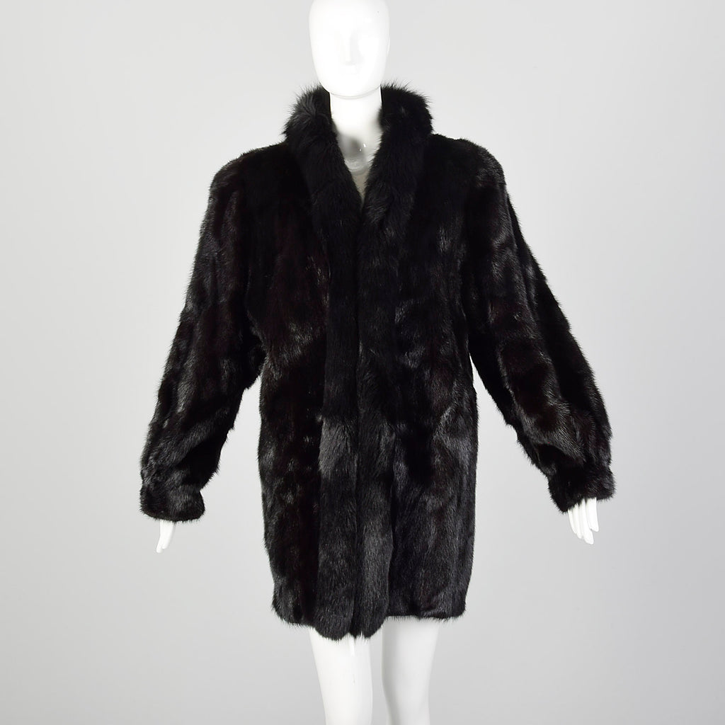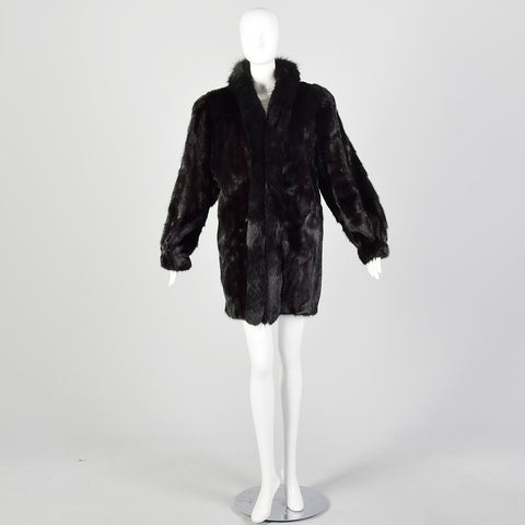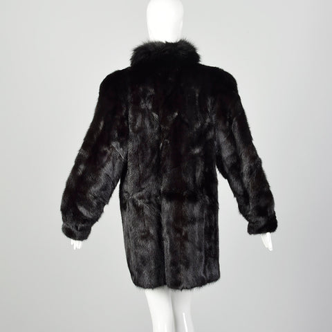 Large 1980s Black Mink Coat with Fox Fur Lapel