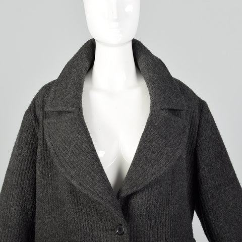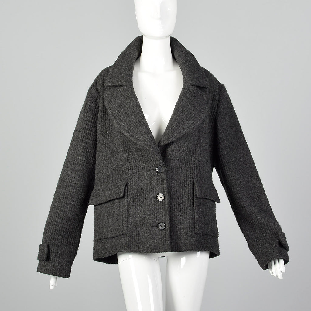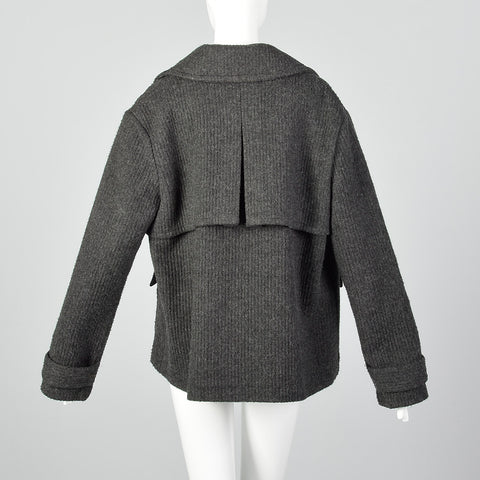 This listing is for one coat. Textile is an unmarked winter weight gray wool, very soft and possibly a cashmere blend. Jacket features a subtle qui...