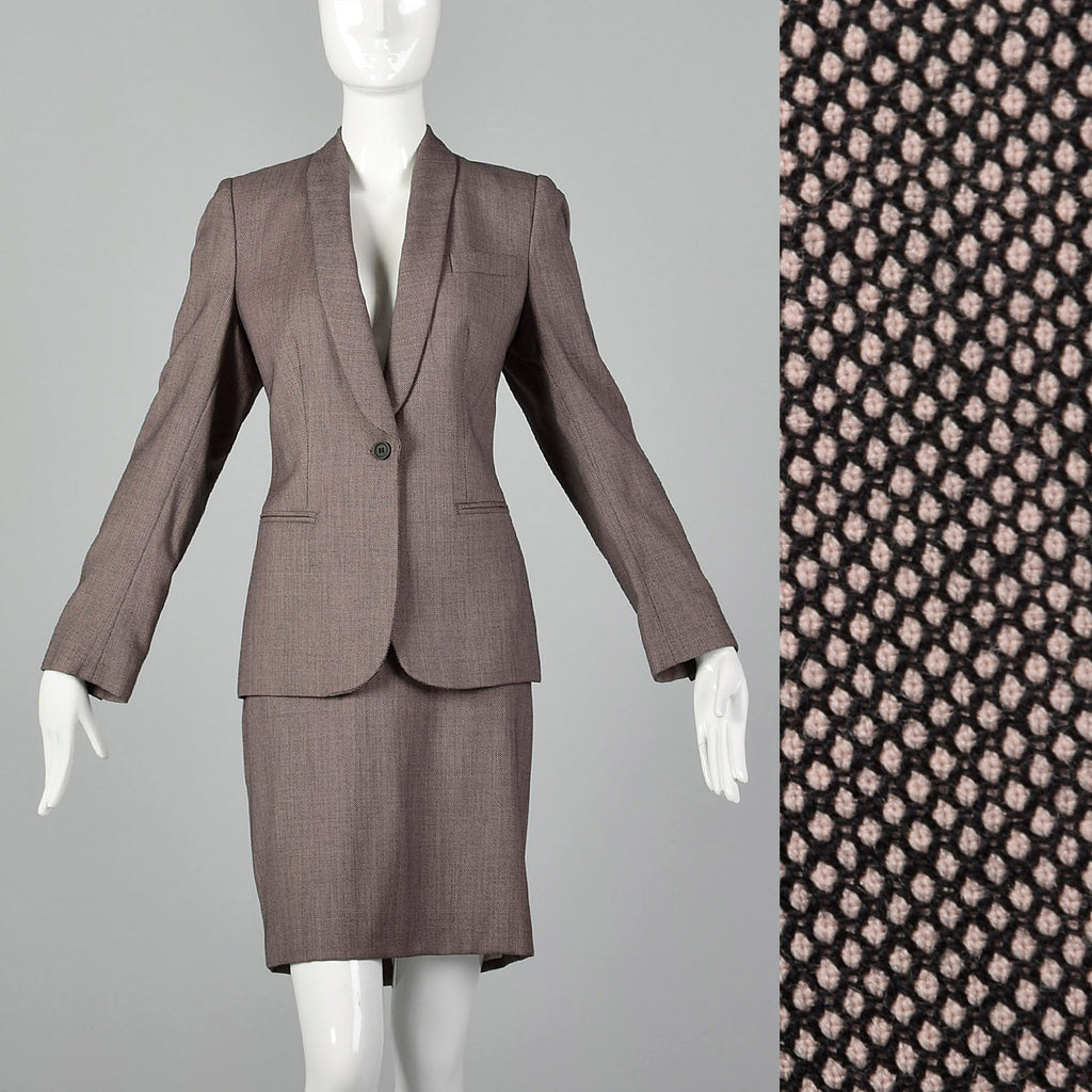 This listing is for one skirt suit. Textile is a mid to lightweight wool in light pink and black with silk lining. Suit by Alexander McQueen featur...