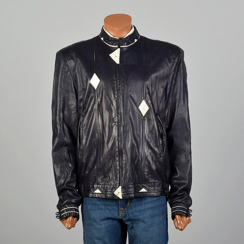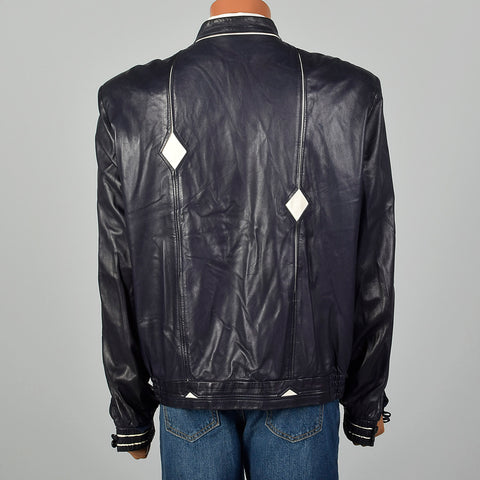 Large Battaglia 1980s Rockabilly Navy Leather Jacket