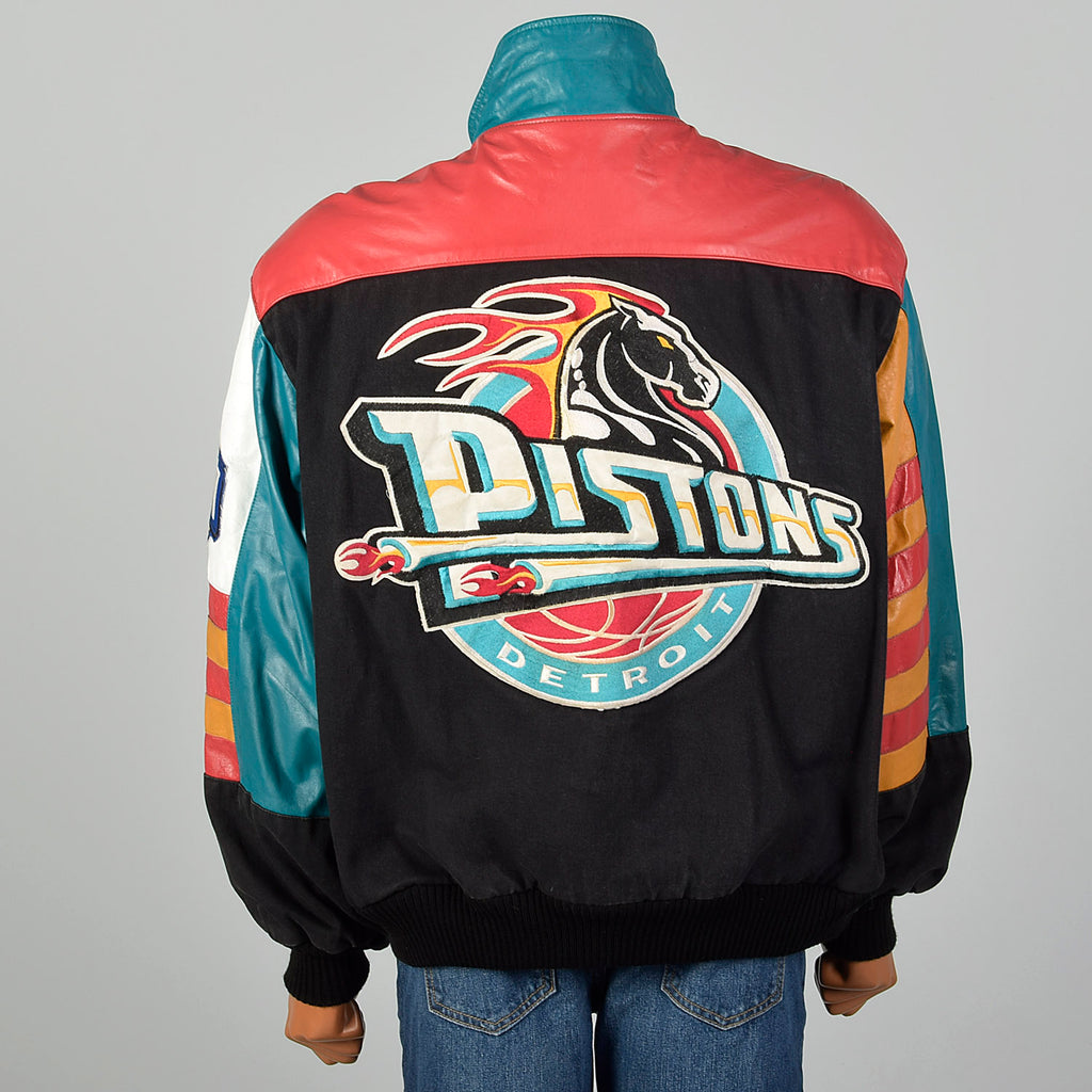 This listing is for one jacket. The textiles are cotton and leather. Rare Pistons Jeff Hamilton jacket. The body of the garment is made with black ...