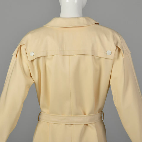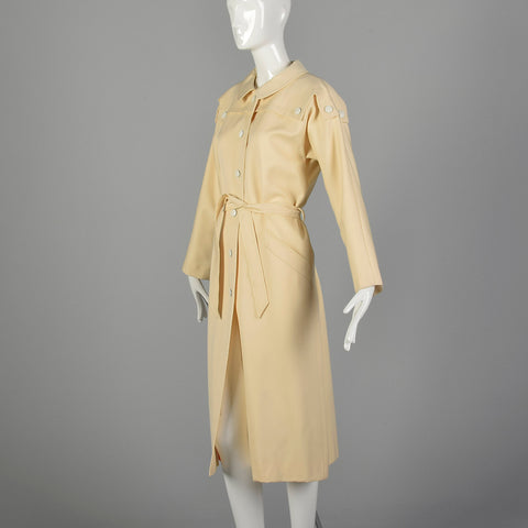 This listing is for one coat. The textile is unmarked. Pierre Cardin's light tan version of a classic trench coat. Features the traditional storm f...