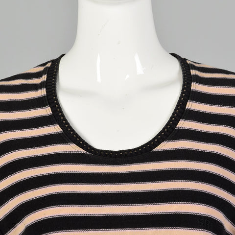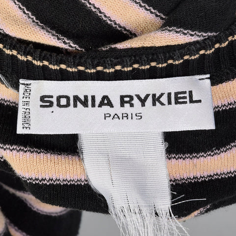 Large Sonia Rykiel 1990s Pink Black Striped Shirt Sleeved Sweater