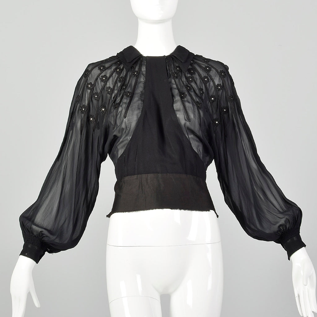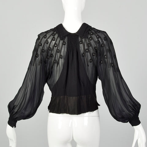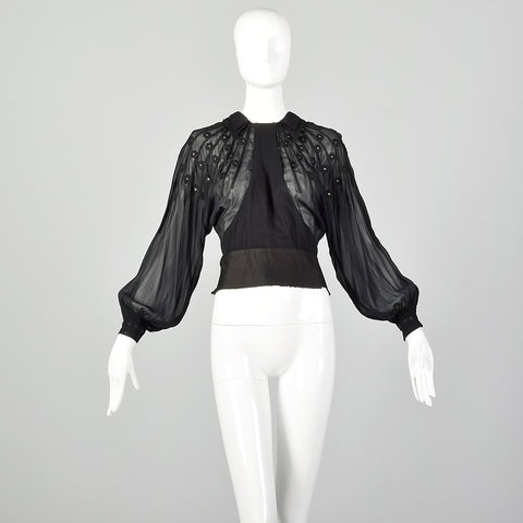 Medium 1930s Sheer Black Shirt