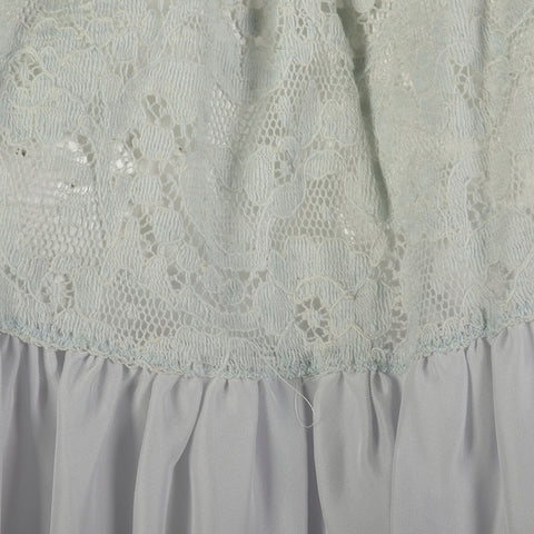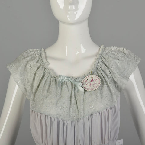 Description: Powder blue rayon boudoir gown is light and fluid. Call it a nightgown or vintage lingerie, we call it lovely! Condition: Deadstock C...
