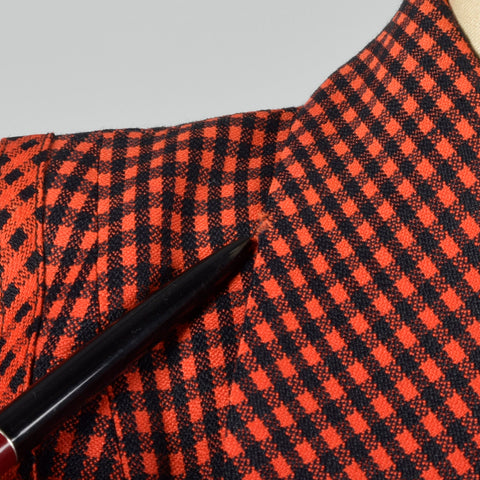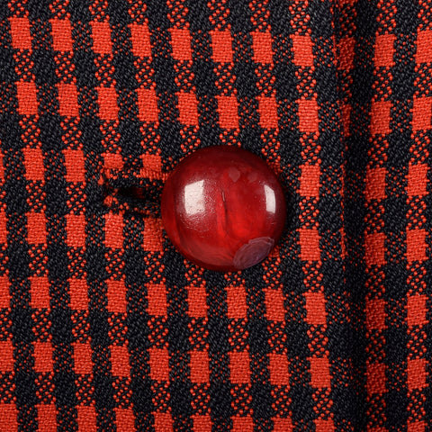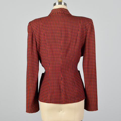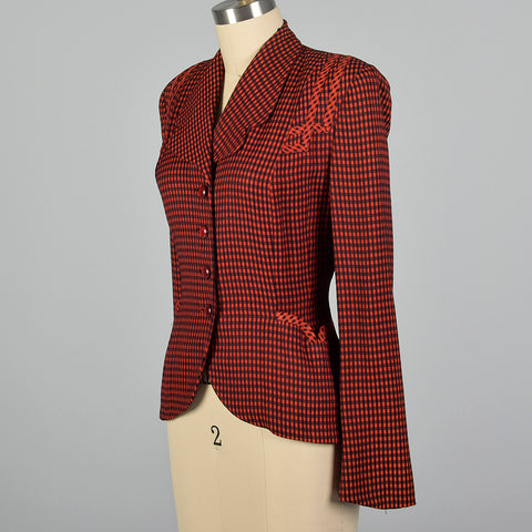 This listing is for one jacket. The textile is unmarked. Holiday ready red and black check jacket. Large shoulder pads with a nipped in waist. Cute...