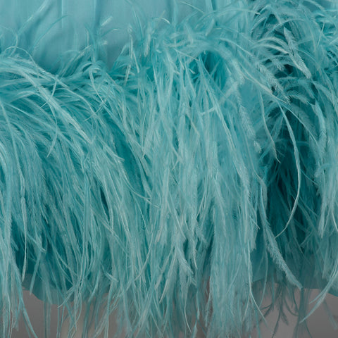 This is such a lovely dress! Aqua silk is lightweight and flowy. Features thin spaghetti straps, a gorgeous gather bodice and full skirt with feath...