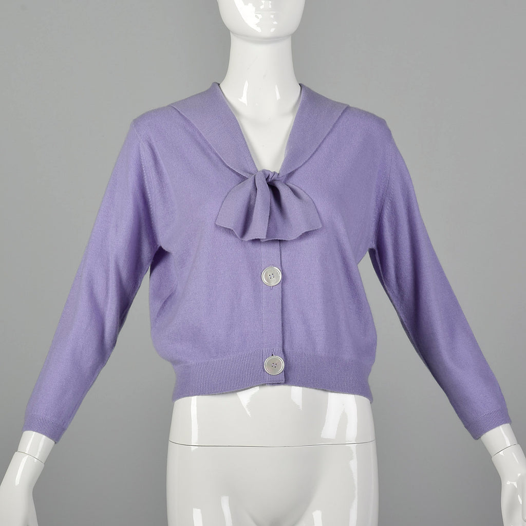 This listing is for one sweater. Textile is a mid weight soft cashmere. Sweater features sailor collar, bracelet sleeves, neck tie, large buttons u...