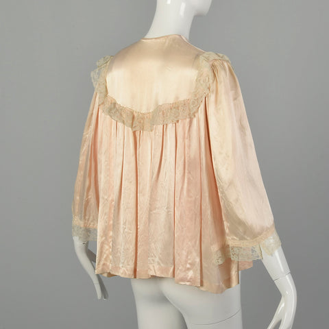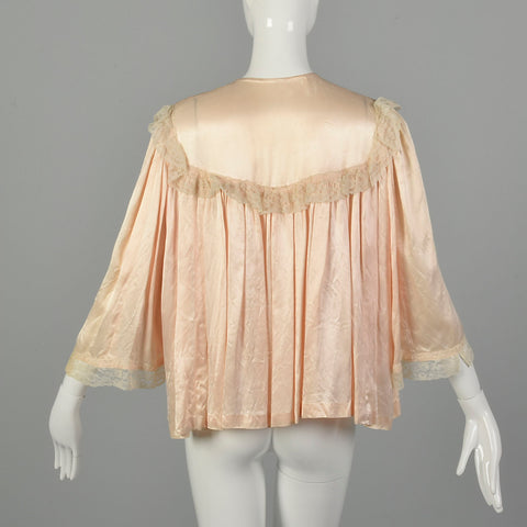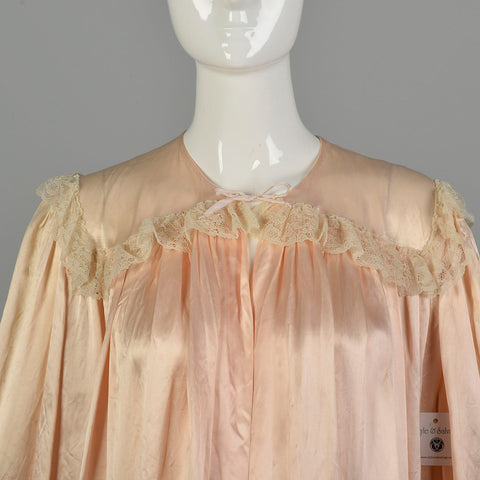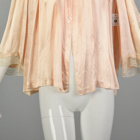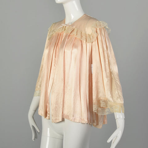 Medium 1950s Bed Jacket Pink Silk Glamorous Boudoir Swing Robe Lingerie