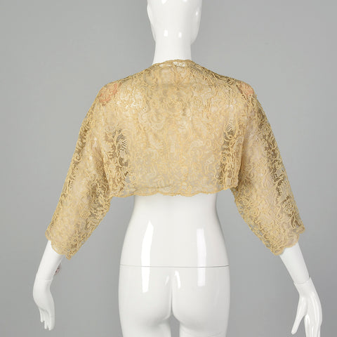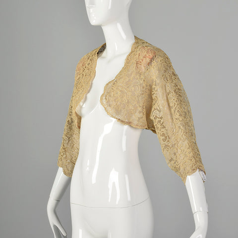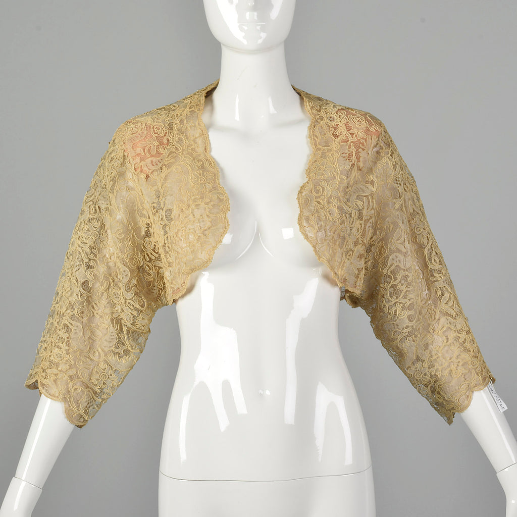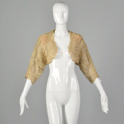 This listing is for one jacket. Textile is lace. This classic and fun beige bolero jacket features lace with an organic, abstract animal pattern. S...