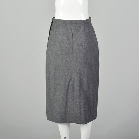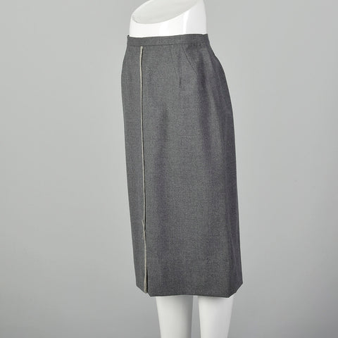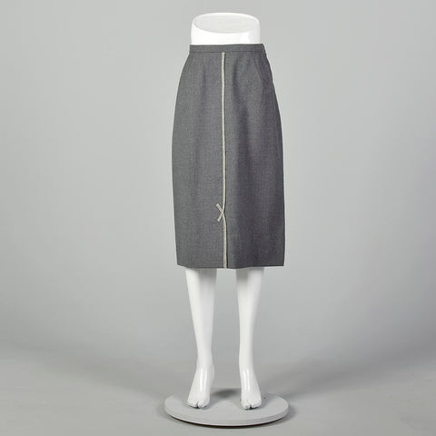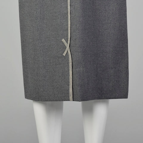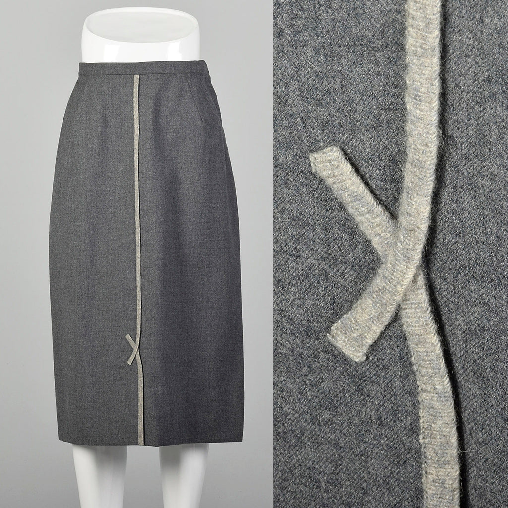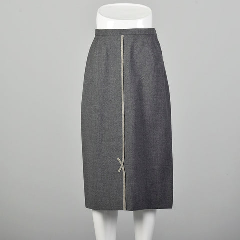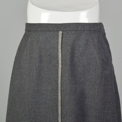 Medium 1950s Gray Wool Skirt with Dove Gray Details
