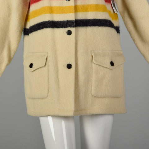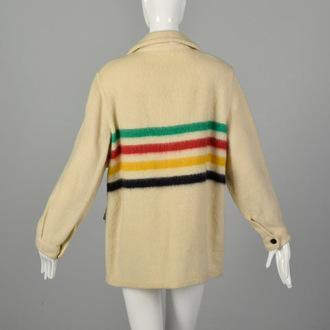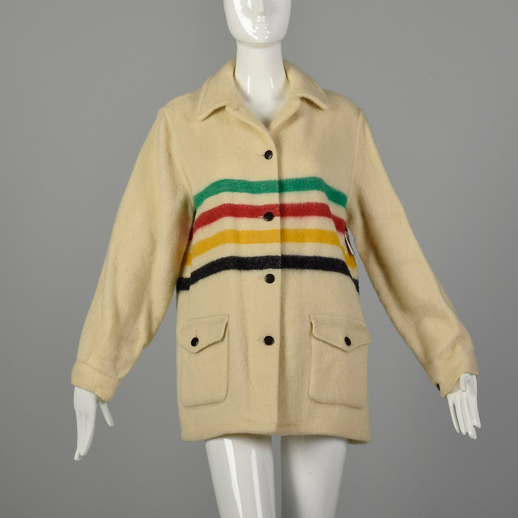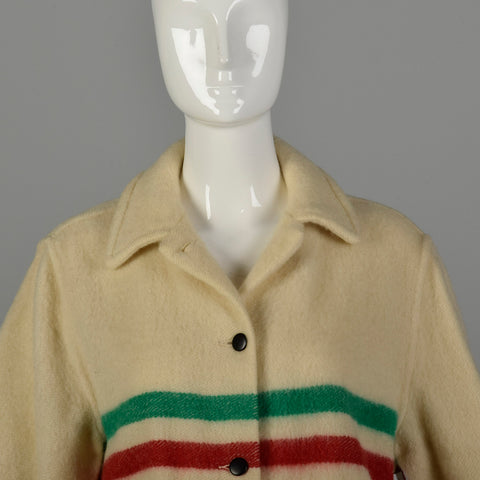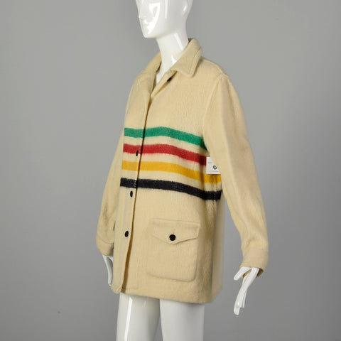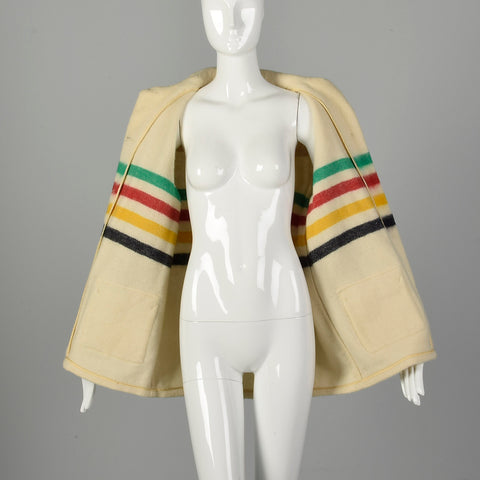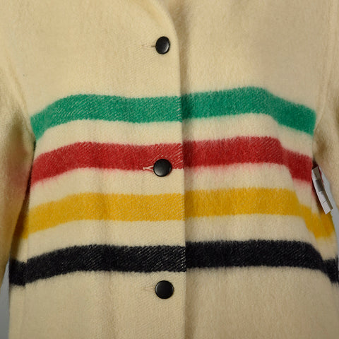 Medium 1950s Hudson Bay Striped Wool Blanket Coat Cozy Autumn Outerwear