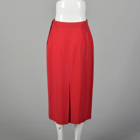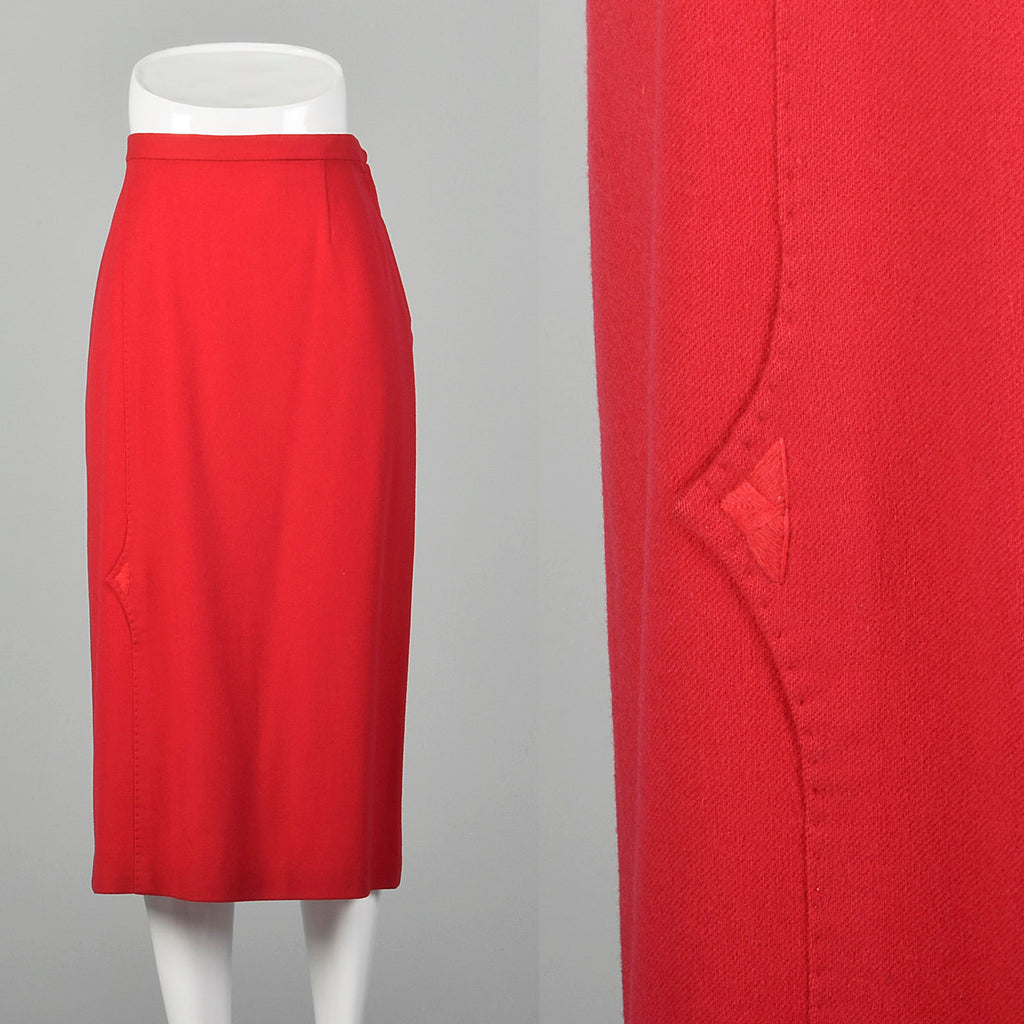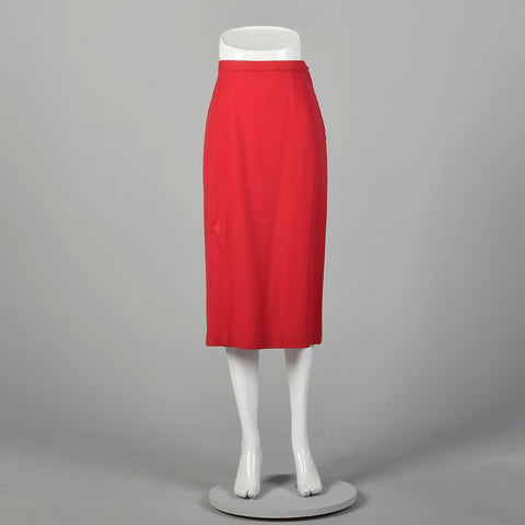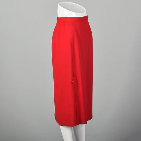 This listing is for one skirt. The textile is 100% wool. Hot raspberry pink pencil skirt with a decorative seam detail on the front and a rear reve...