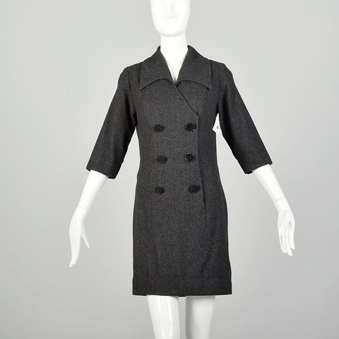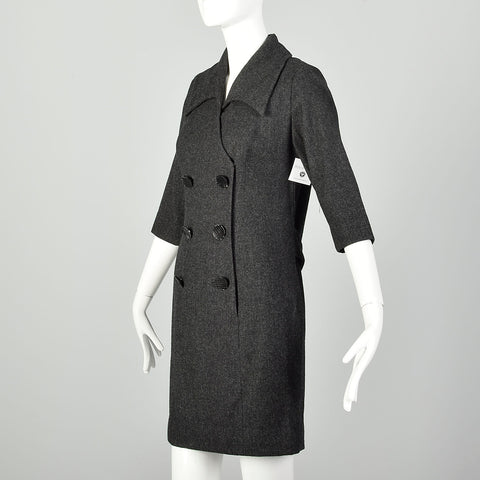 Medium 1960s Wool Dress Gray Double Breasted Casual