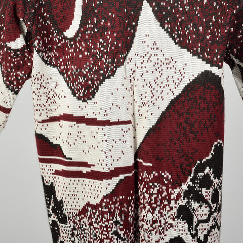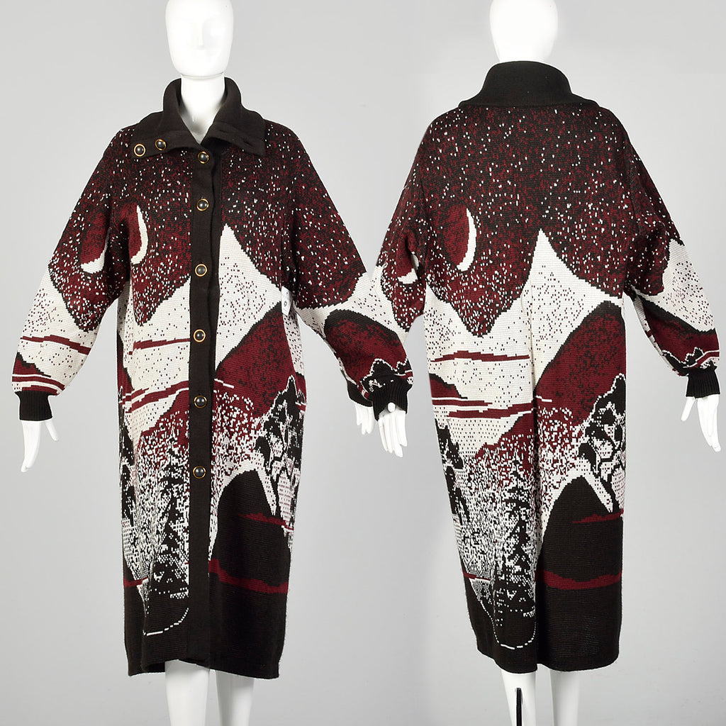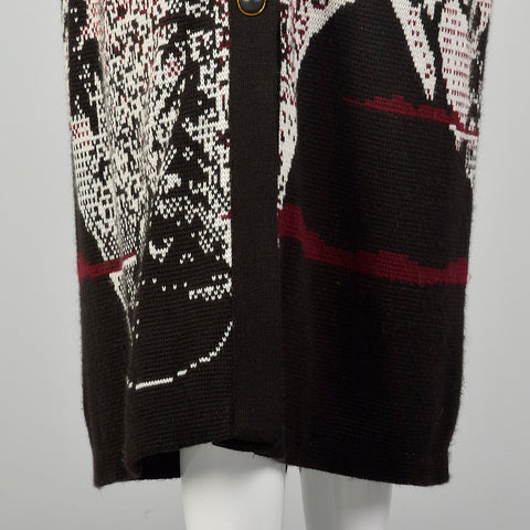 Medium 1980s Cozy Cardigan Coat Novelty Landscape Knit Sweater