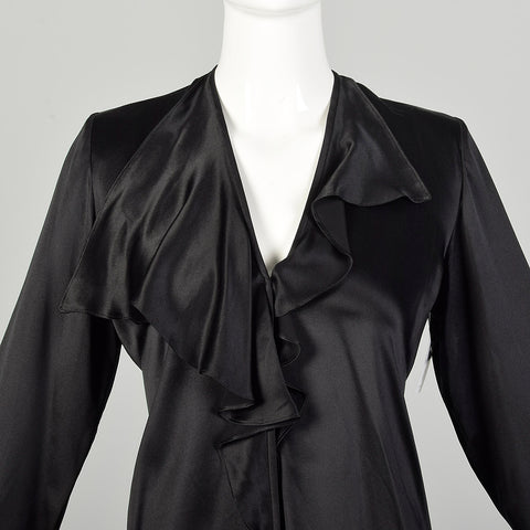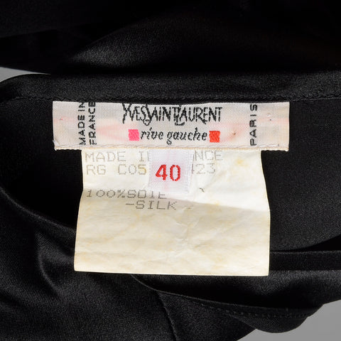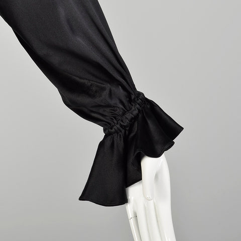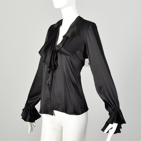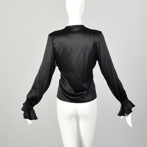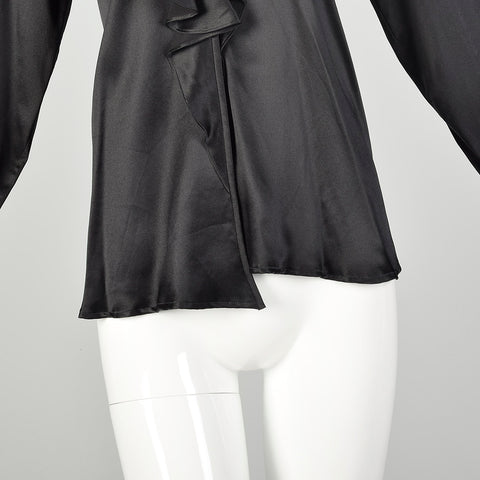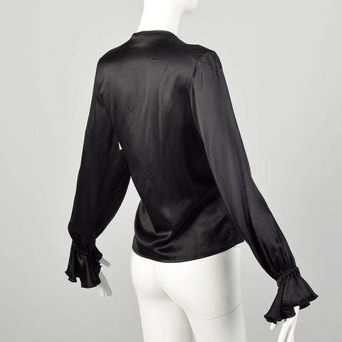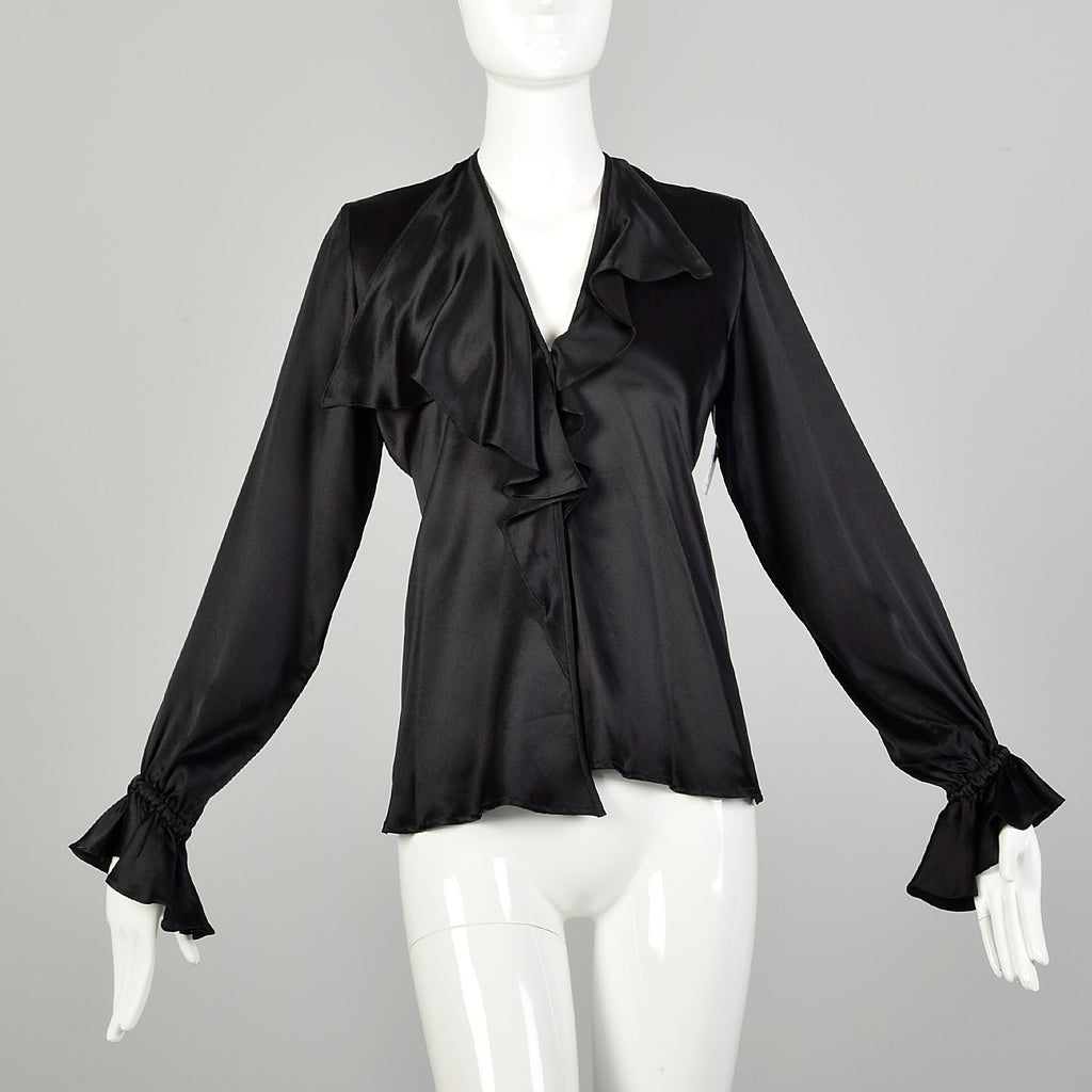 Medium 1990s Black Silk YSL Ruffle Blouse Classic Charmeuse Rive Gauche Top