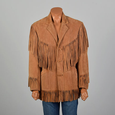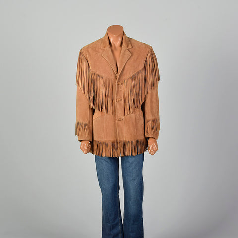 This listing is for one jacket. The textile is leather. Call back to the days of Davy Crockett and Daniel boon in this brown buckskin suede jacket....