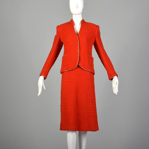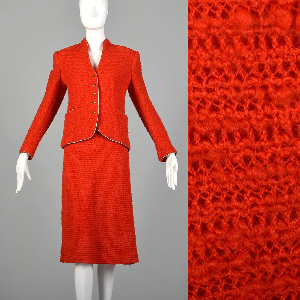 Medium Beni Salvadori Sara Fredericks 1970s Red Open Knit Skirt Suit