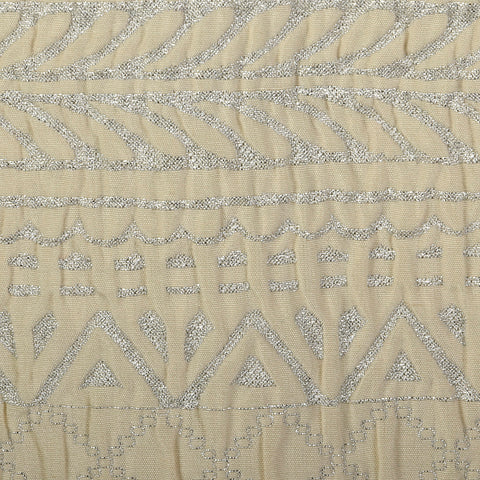 This listing is for one jacket. The textile is unmarked. Cream and metallic silver blazer style jacket. Jacket has a textured feel with silver geom...