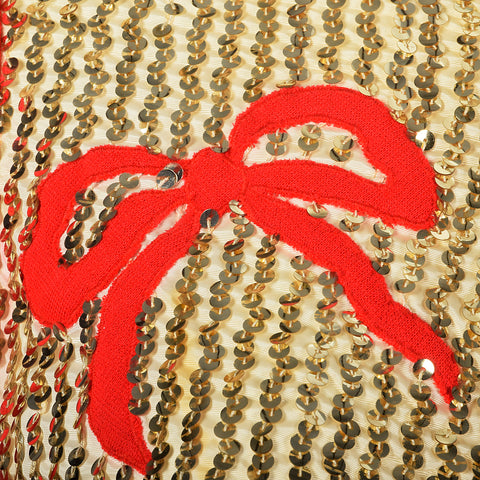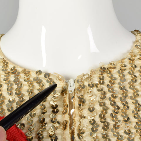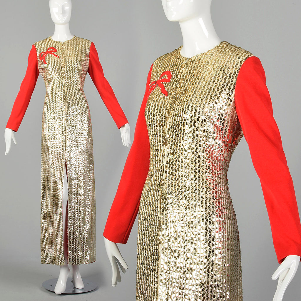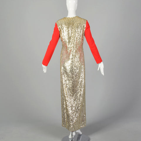 Medium Oscar de la Renta 1970s Long Gold Sequin Red Sleeve Dress