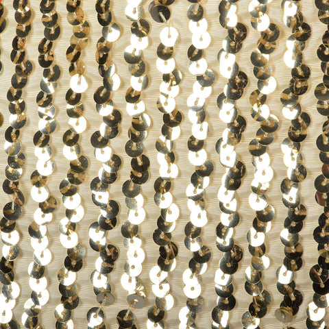 This listing is for dress. The textile is unmarked. Get "wrapped" up in this snazzy gold gown. The body of the dress is ivory covered in white gold...