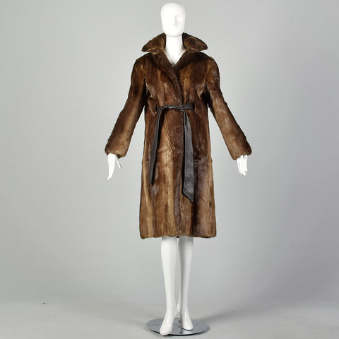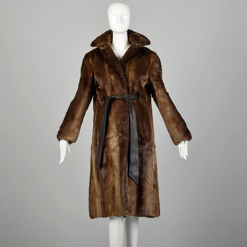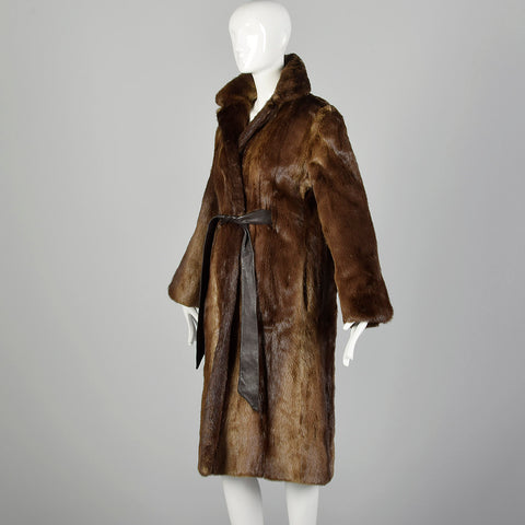 This listing is for one fur coat. The textile is river otter fur. Knee length fur coat with with belt slits on the sides allow for the coat to be c...