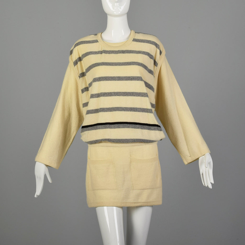 Medium Sonia Rykiel 1980s Cream Striped Tunic Sweater