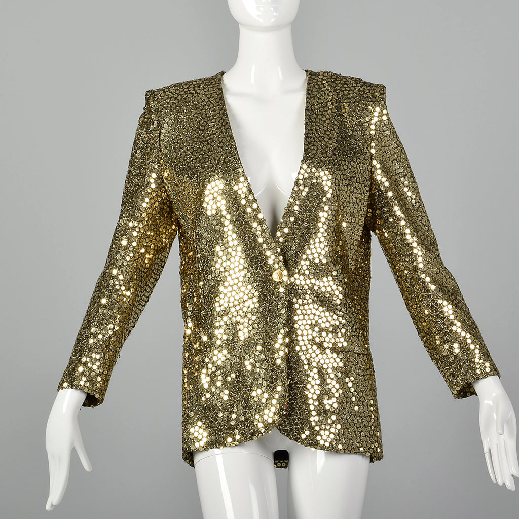 Medium Sonia Rykiel 1980s Gold Sequin Blazer