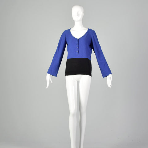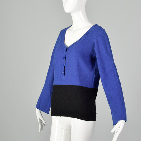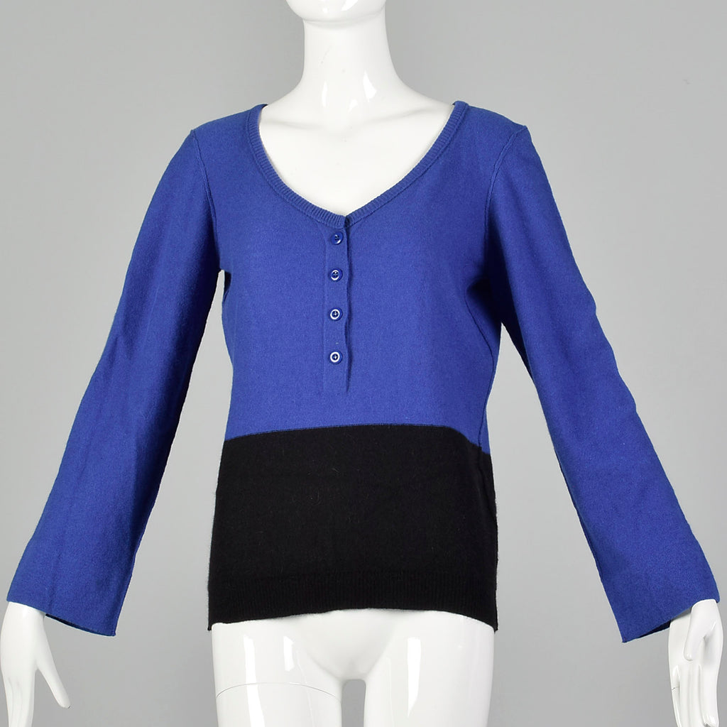 Medium Sonia Rykiel 1990s Blue and Black Color Blocked Sweater
