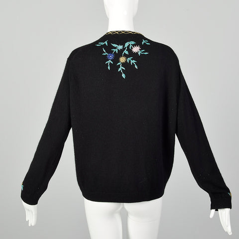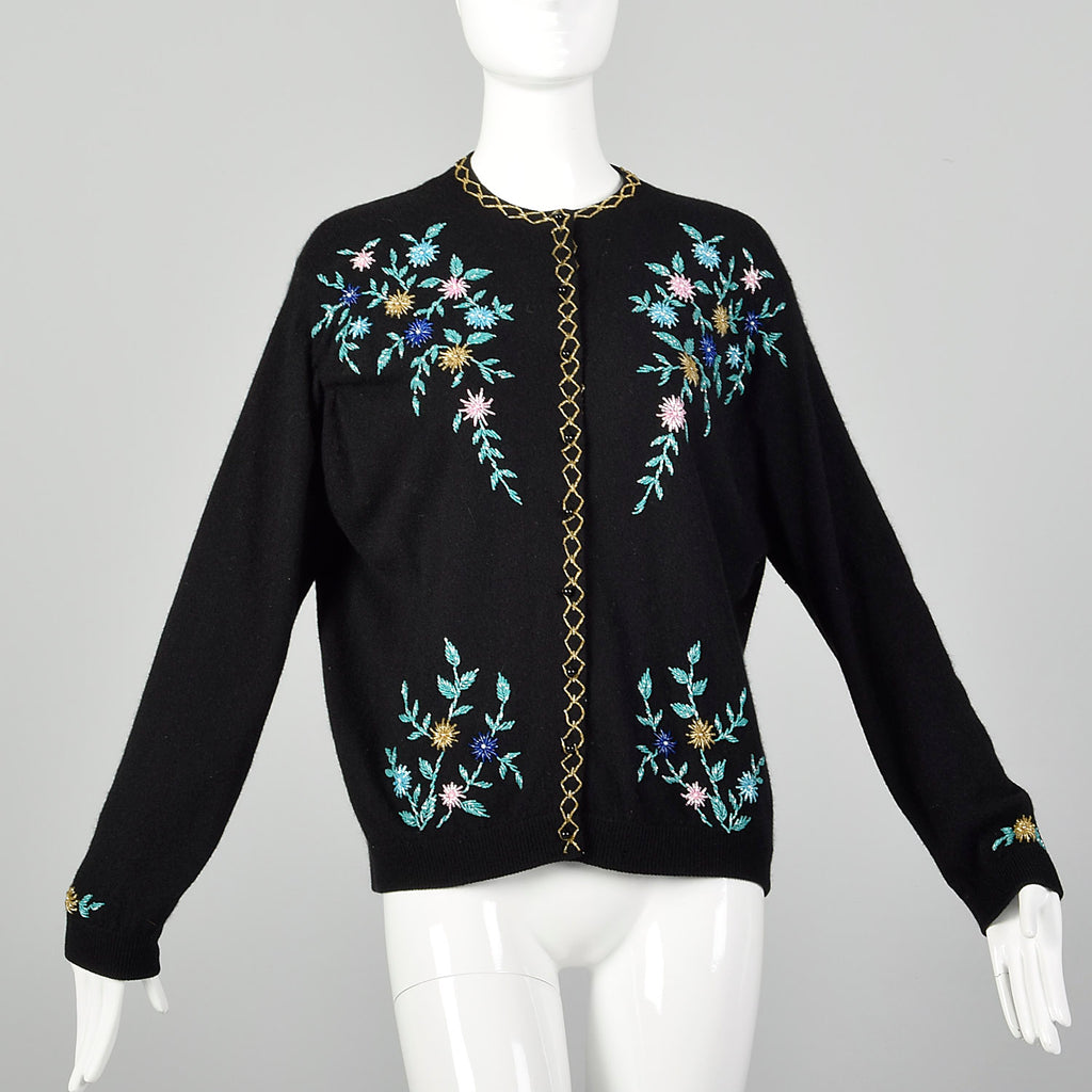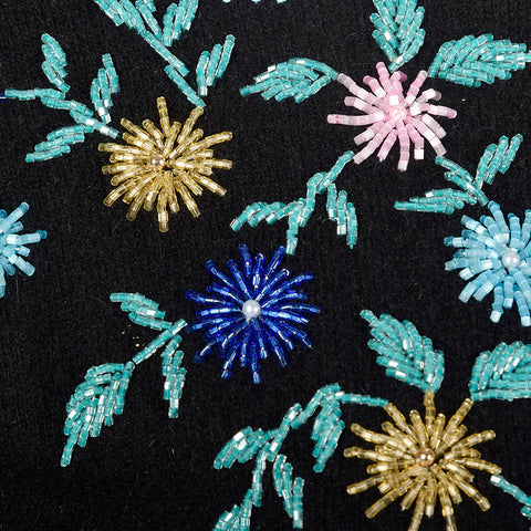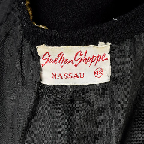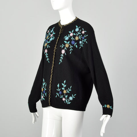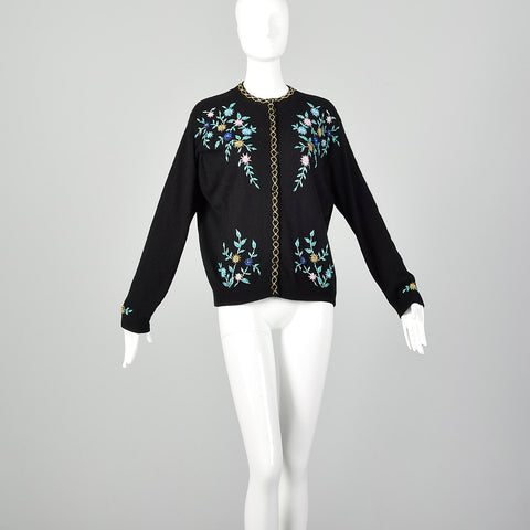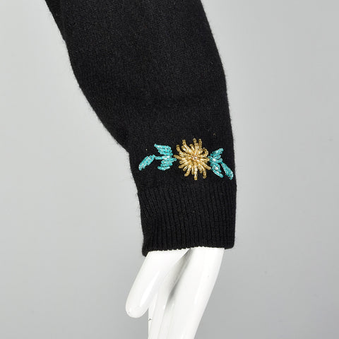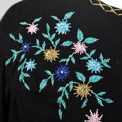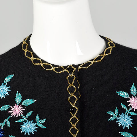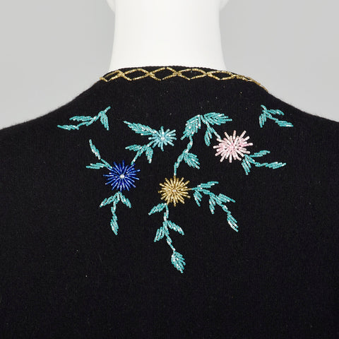 Medium-XXL 1960s Black Beaded Cardigan Sweater