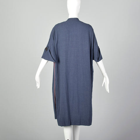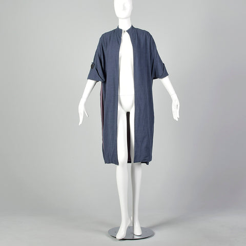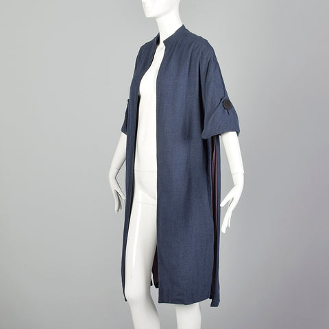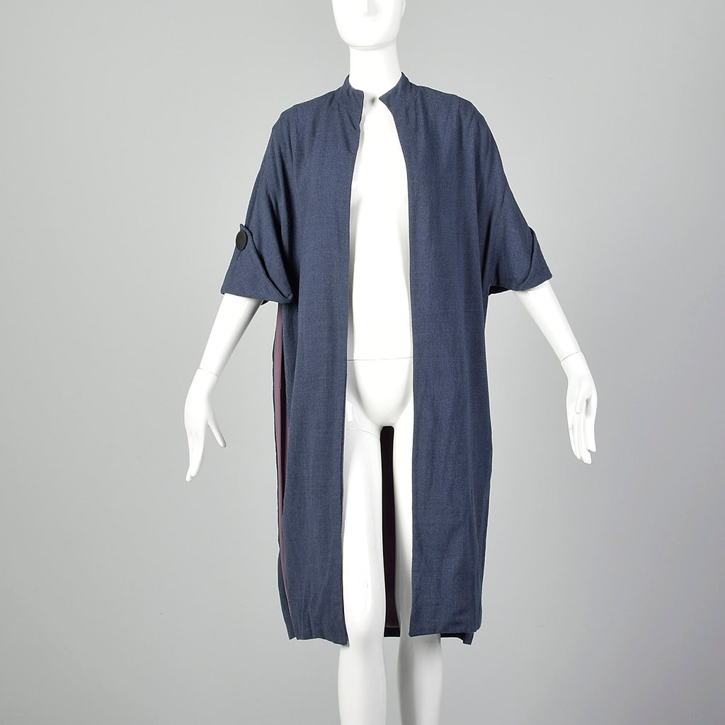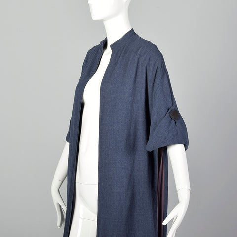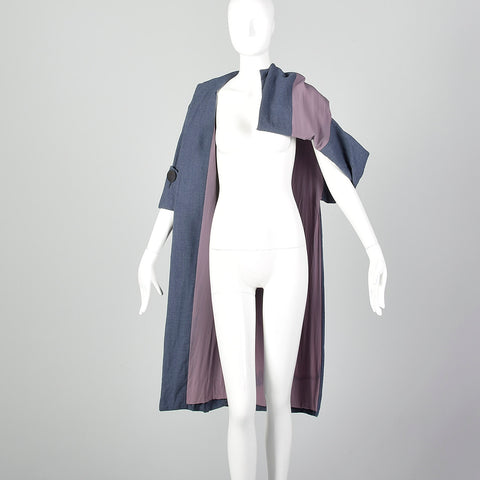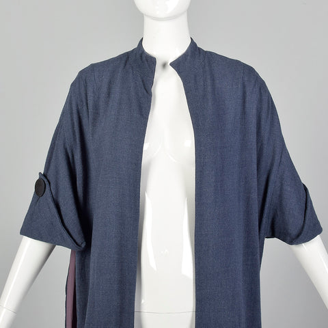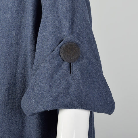 This listing is for one jacket. The textile is unmarked wool tabard. Very unique, bluish gray cape jacket. Dropped shoulders sit well on the body f...