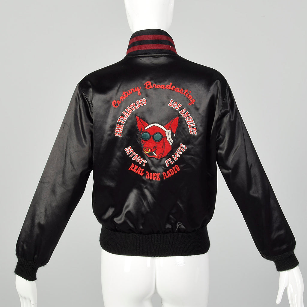 Custom made by The Magic Land of Ubilam (Malibu backwards), this 1970s KSHE Real Rock Radio black satin jacket is incredibly rare! From beginning t...