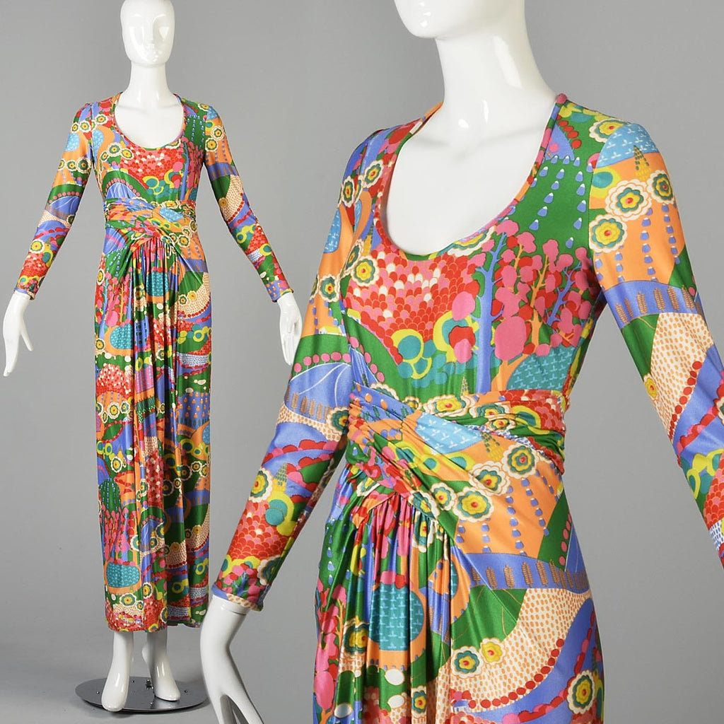 Robert David Morton Maxi Dress in a Signed Psychedelic Print