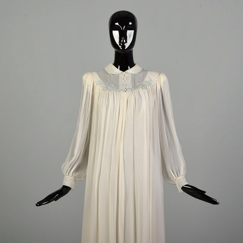 A striking vintage peignoir set, ivory with powder blue satin trim and embellishments. The chiffon bodice is exceptionally lovely and flattering. A...