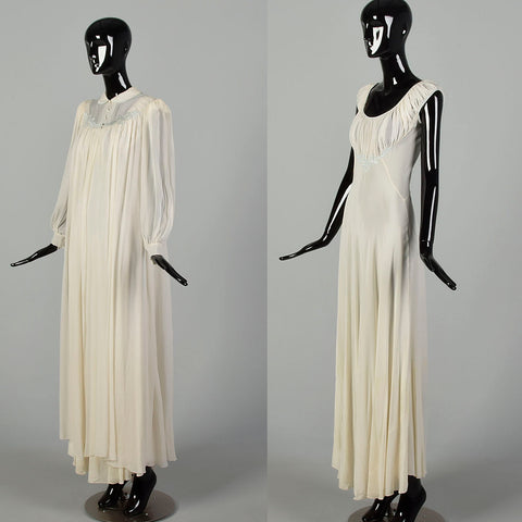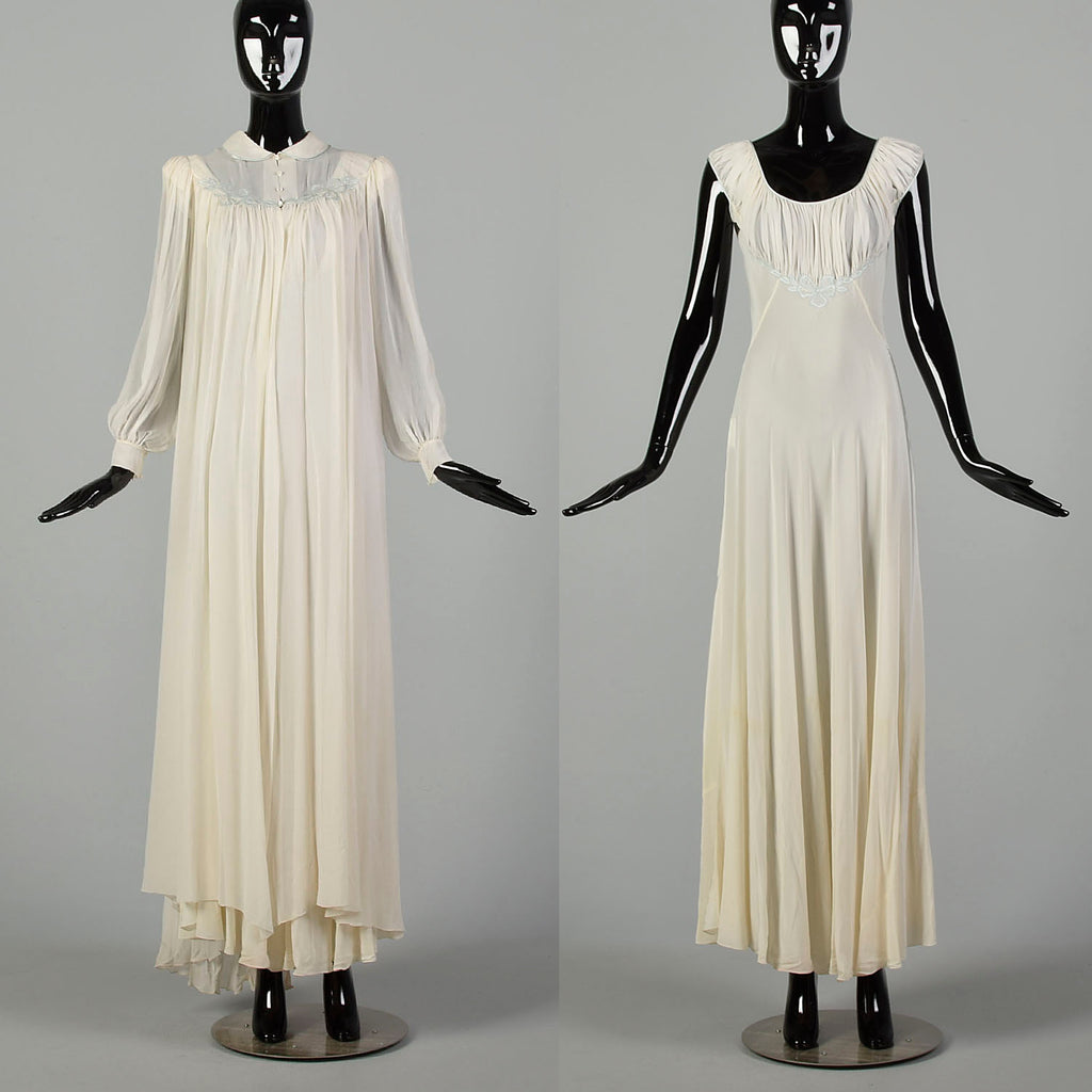 Small 1930s Silk Peignoir Set Bias Cut Nightgown Honeymoon Lingerie