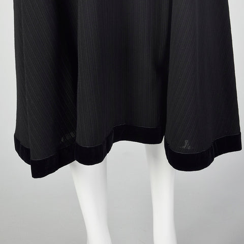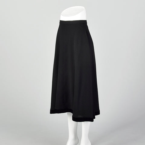 This listing is for one skirt. The textile is unmarked. Stunning black a-line skirt. The material is a textured shadow stripe with a plush velvet t...